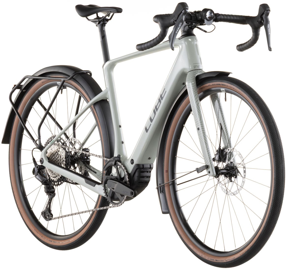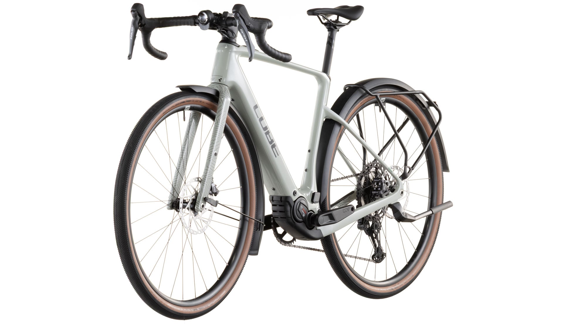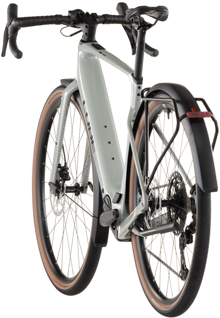 There's more to making a really practical frame than bolting on mudguards and a carrier, although they've done that too. The Nuroad Hybrid C:62 FE's elegantly sculpted C:62 frame is full of neat touches, like the ability to run up to 50mm tyres even with the included mudguards. The full carbon fork has carrier mounts, Cube added a Direct Mount lightweight chain guide, there's a flat mount kickstand interface, and the rear end is equipped with Boost axle and UDH gear hanger.
